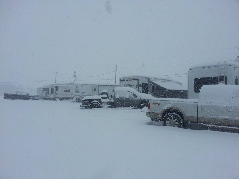 We are open year round...as you can see by the picture at the left. We had a 18 inch snow in Jan. 2016 and all of our campers made it just fine! The good thing is you are on pretty flat ground and very close to main roads so no serious issues getting out!